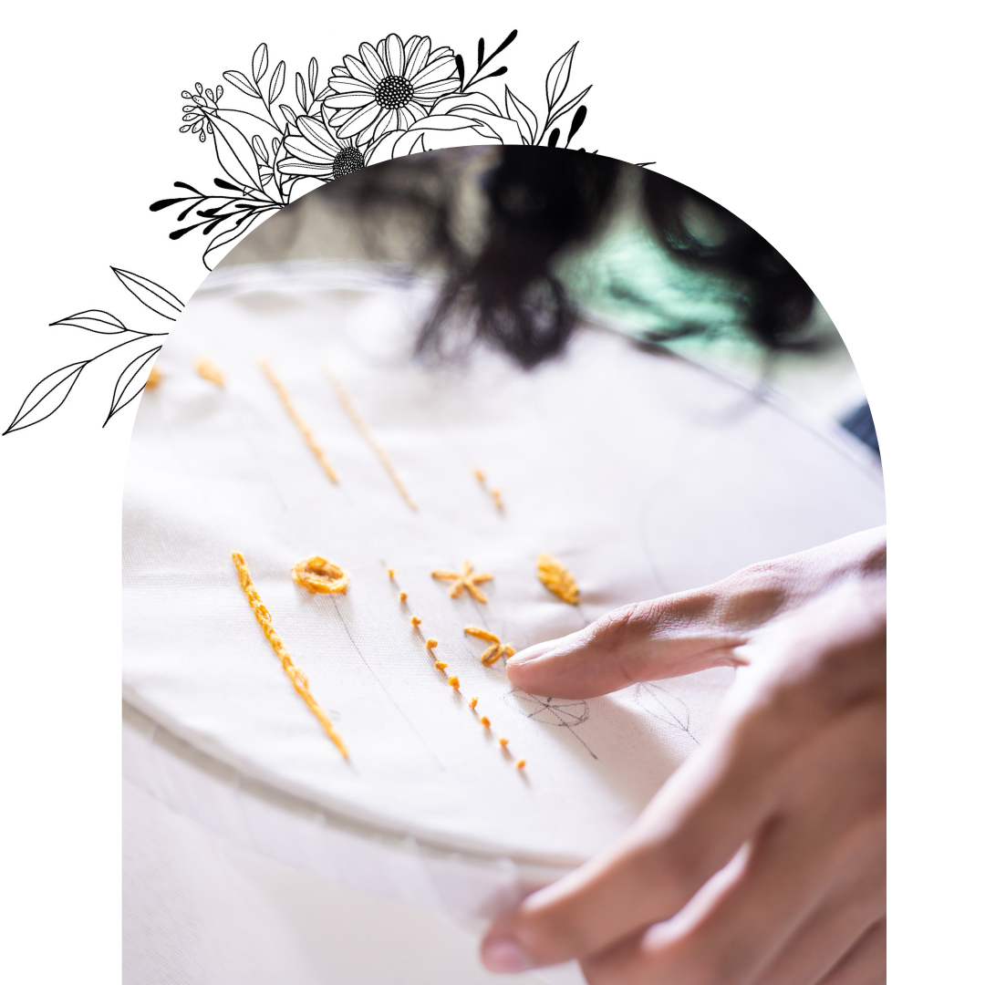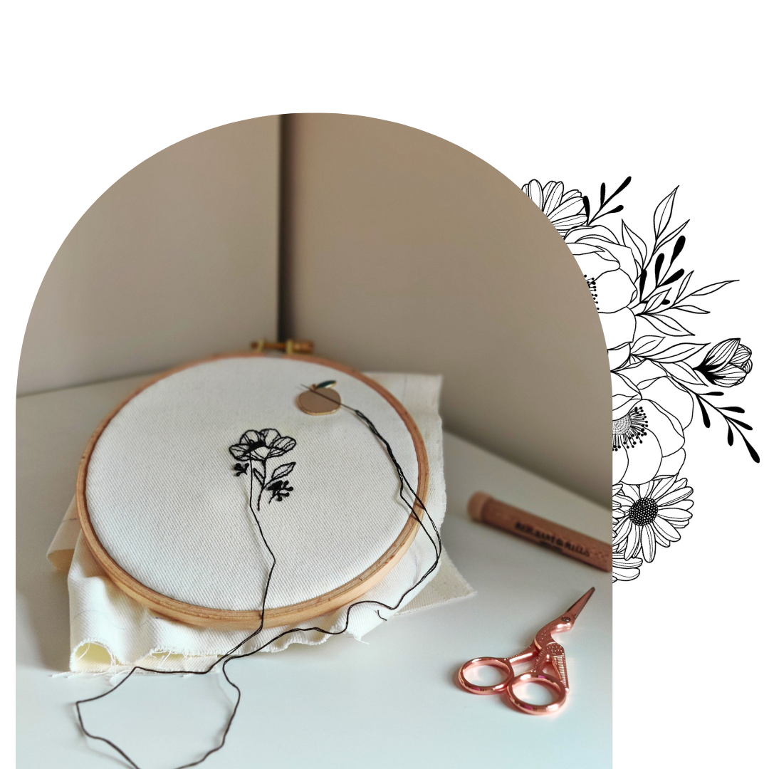 Durant cet atelier d’une durée de 3 heures, je vous accompagnerai pas à pas dans l’apprentissage des principaux points de base de broderie : le point arrière, le point arrière surjeté, le point de tige, le point de chaînette, le point de bouclette, le point de nœud, …